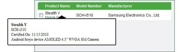 Samsung Stealth: 4.3 pollici e 8MP per un super Android Phone