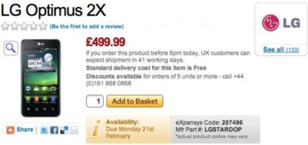 LG Optimus 2X: prezzo e data di commercializzazione
