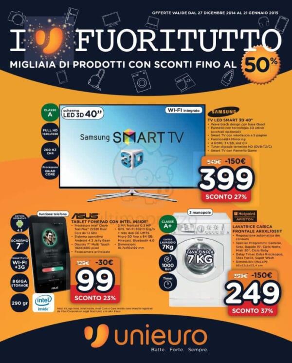 Volantino Unieuro: Il fuoritutto continua fino all’11 Febbraio con sconti fino al 50%