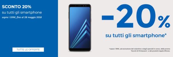 Unieuro sconta del 20% tutti gli Smartphone sopra i 199 euro fino al 28 Maggio