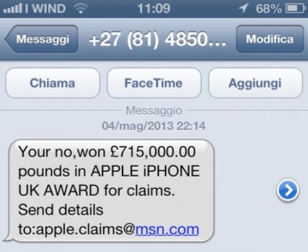Hai vinto un sacco di soldi in un concorso Apple? Attenzione, è una truffa!