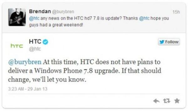 HTC HD7 non sarà aggiornato a Windows Phone 7.8