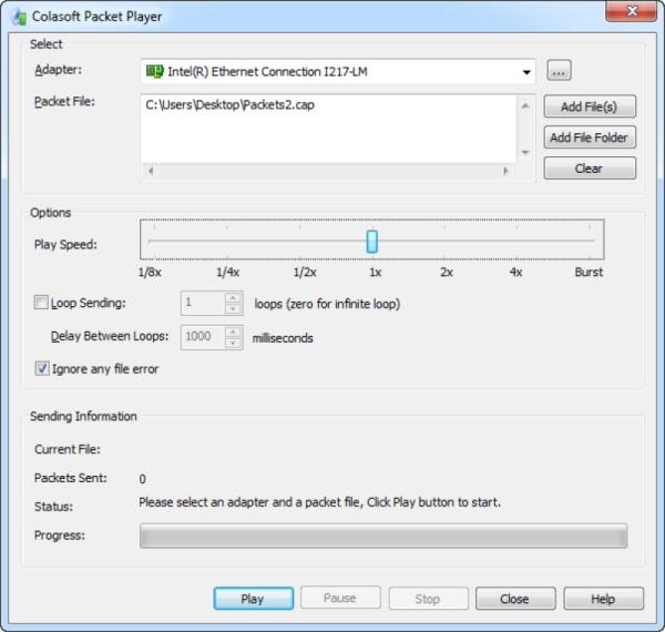 Riproduci in rete pacchetti catturati con programmi di sniffing