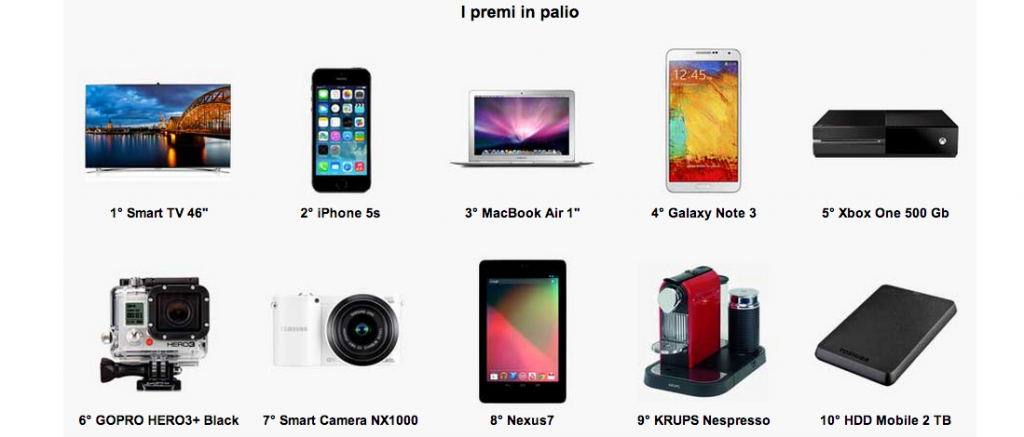 In Palio i migliori dispositivi tecnologici del momento come iPhone 5S, Macbook Air, Galaxy Note 3 ed altri elencati nella seguente foto