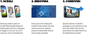 Il Gioco consiste nello stabilire le posizioni geografiche dove sono state scattate le foto che il sistema ci presenta, per vincere un modello della famiglia Galaxy S4.