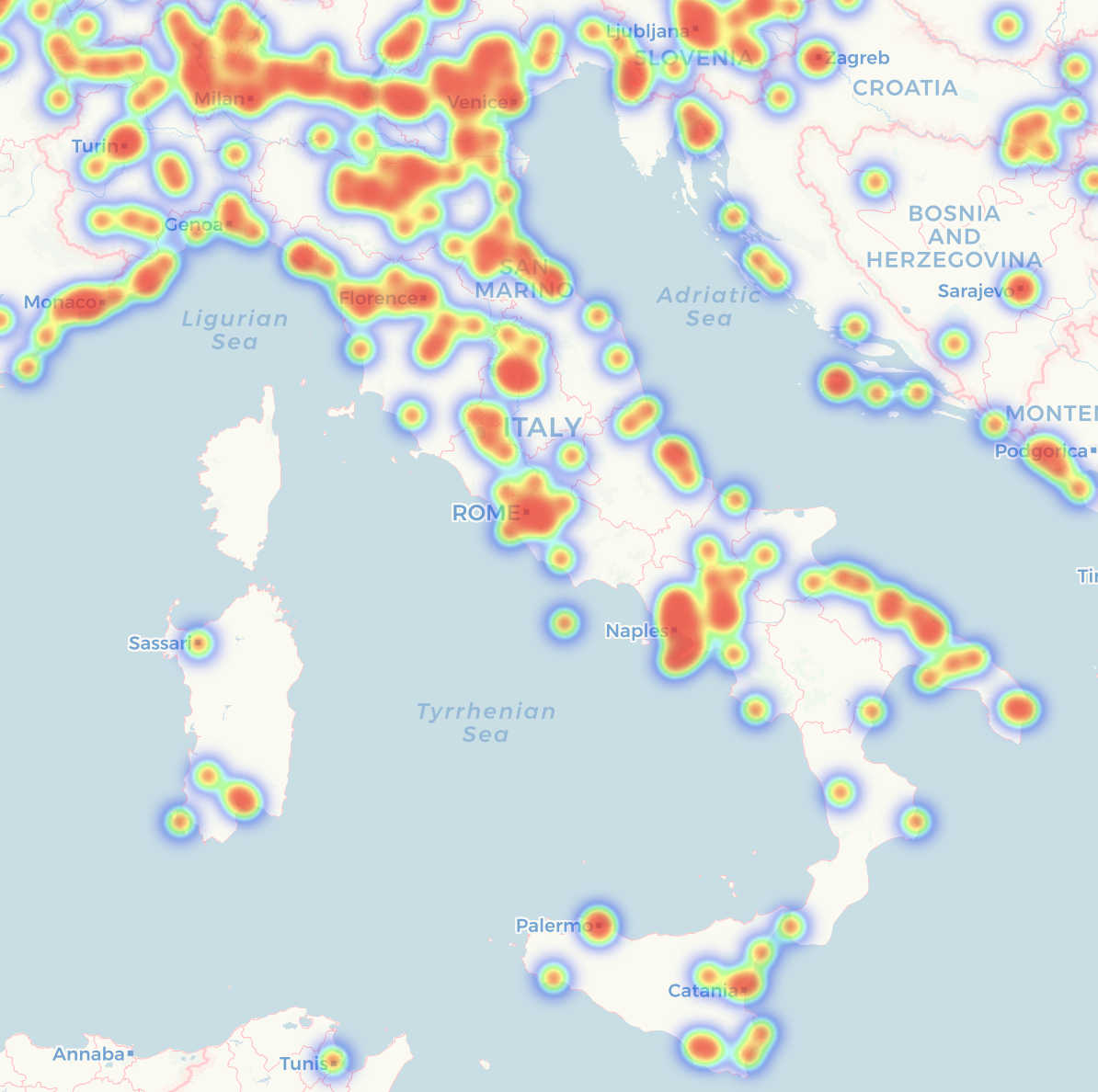 Iniziamo con la mappa dei negozi che si sono registrarti in Italia e che accettano il pagamento in Bitcoin. Come vedete dall'immagine seguente non sono tanti ma ad esempio nel nord Italia di sono diversi negozi che accettano i Bitcoin soprattuto in Veneto. La mappa è disponibile CLICCANDO QUI.