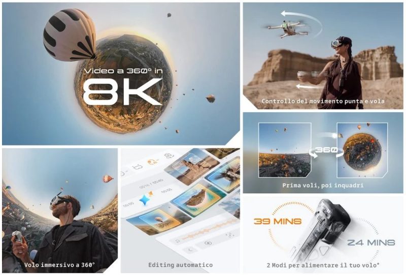 Questo dispositivo innovativo segna l'ingresso di un nuovo competitor nel settore dominato da DJI, introducendo una categoria di prodotto completamente inedita destinata a rivoluzionare le riprese aeree immersive.