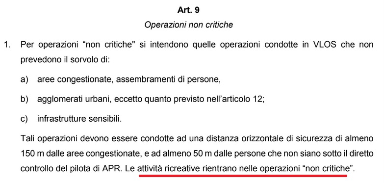 In sostanza, chi utilizzerà i droni a scopo ricreativo dovrà seguire le indicazioni delle operazioni non critiche riportate nel regolamento.