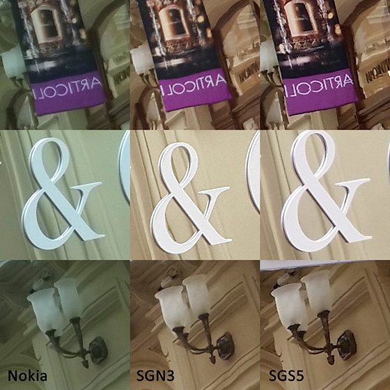 Personalmente ho provato il Lumia 1520 e le sue foto mi sembrano assolutamente a livello del Note 3: forse in questo test il modello provato aveva qualche problema, soprattutto con il bilanciamento dei colori. Appare evidente, comunque, l'biettivo grandangolare del Lumia rispetto a tutti gli altri: le sue foto sono molto meno zoomate della concorrenza. Altra cosa importante da notare è che solitamente il Lumia scatta fotografie di qualità quando NON è impostato in automatico, ma in manuale. Probabilmente in questo test era impostato in automatico ed è per questo che le foto non hanno una qualità perfetta.