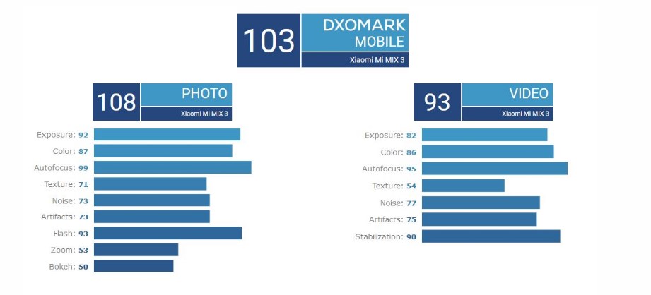 Dunque tutti i rumors sono stati confermati ma c'è un dato che ci sorprende e ce lo conferma il sito DxOMark, che ha assegnato un punteggio di 103 punti alla fotocamera di Xiaomi Mi MIX 3 e che lo pone appena dietro a Huawei P20 Pro, Apple iPhone XS Max, HTC U12+ e Samsung Galaxy Note 9.