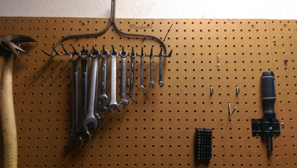 10) Un vecchio rastrello per organizzare le chiavi: Per degli attrezzi più ordinati