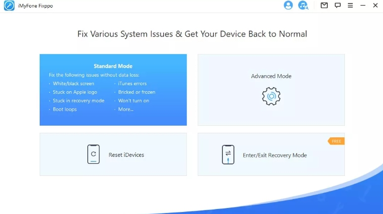 Passaggi per risolvere i problemi di iPhone senza perdita di dati utilizzando iMyFone FixppoPassaggio 1. Scegli la Modalità Standard su iMyFone Fixppo e collega il tuo iPhone