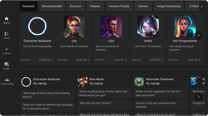 Inoltre, a differenza di altre piattaforme che si limitano alla chat con chatbot AI, Character AI consente agli utenti di interagire tra loro. Ha un menu "Feed" e "Community", dove gli utenti possono esprimere liberamente le proprie idee e creare contenuti creativi.