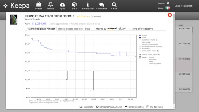 L’altro sito che ti segnalo per fare un tracking dei prezzi di Amazon è https://keepa.com/.