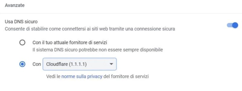 Peccato che non tutti sappiano dove si trova l'impostazione di Chrome che permette di modificare e cambiare i DNS.