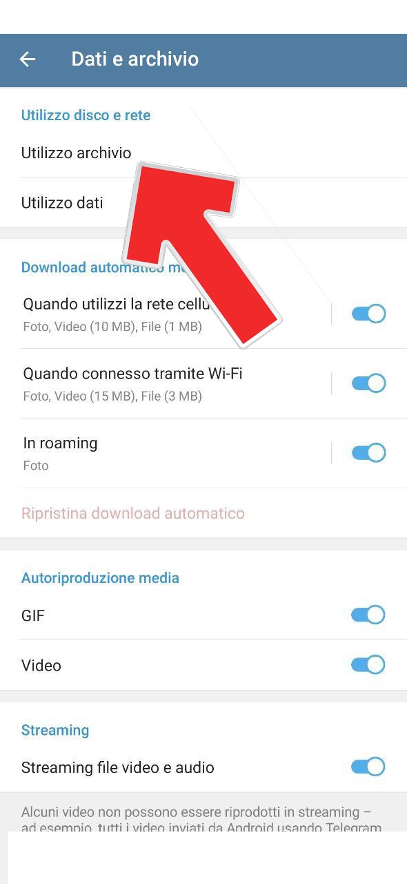 3. Andare su Utilizzo archivio