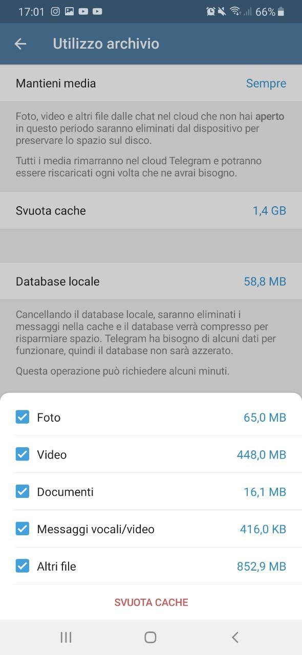 Semplice: non tutti lo sanno, ma a forza di usare Telegram all'interno dello smartphone si accumulano tantissimi file (foto e video soprattutto) che vengono salvati nella cache del telefono e occupano parecchia memoria.