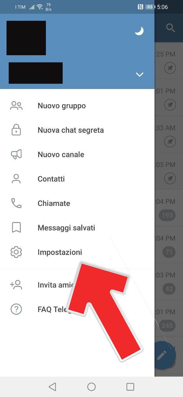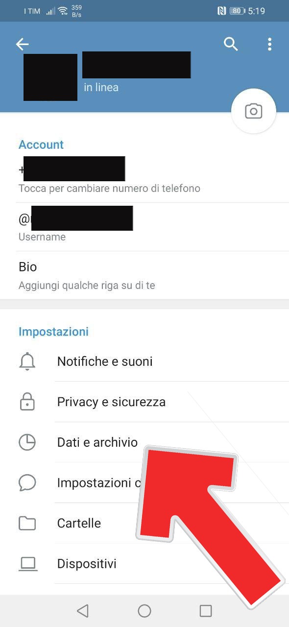 - Aprire Telegram e andare nelle Impostazioni