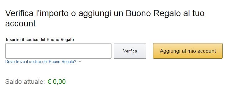 E' possibile aggiungere un buono regalo Amazon al tuo account ed usarlo quando vuoi