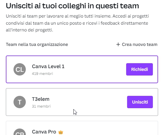 seleziona vari team finché non trovi quello con scritto UNISCITI direttamente (al posto di RICHIEDI)