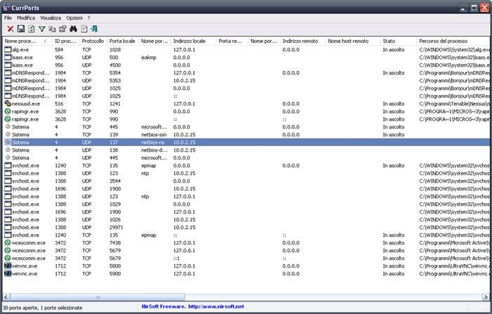 CurrPorts è un programma portatile gratuito che elenca tutti i programmi ed i servizi in un'unica finestra mostrando tutte le connessioni Internet e tutte le porte locali aperte in quel momento.