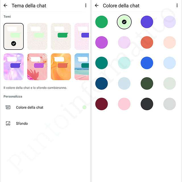 I temi delle chat permettono di aggiungere i colori preferiti ai fumetti e agli sfondi, con varie opzioni tra cui scegliere.