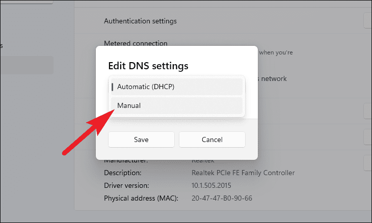 - Nelle Impostazioni del DNS, passa dalla modalità Automatica a quella Manuale