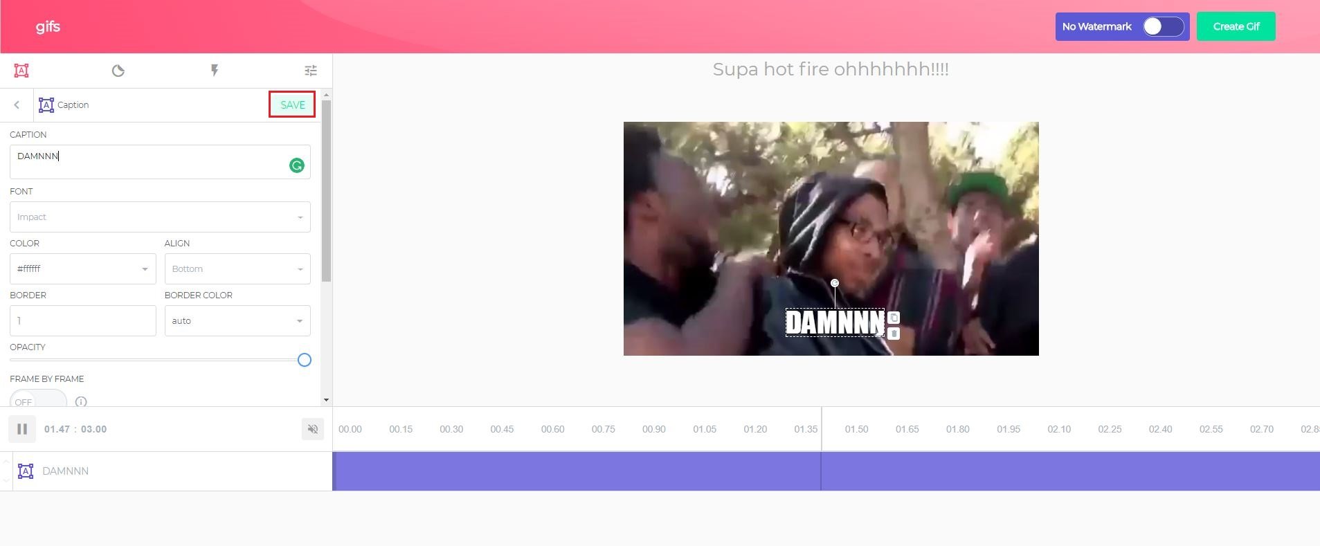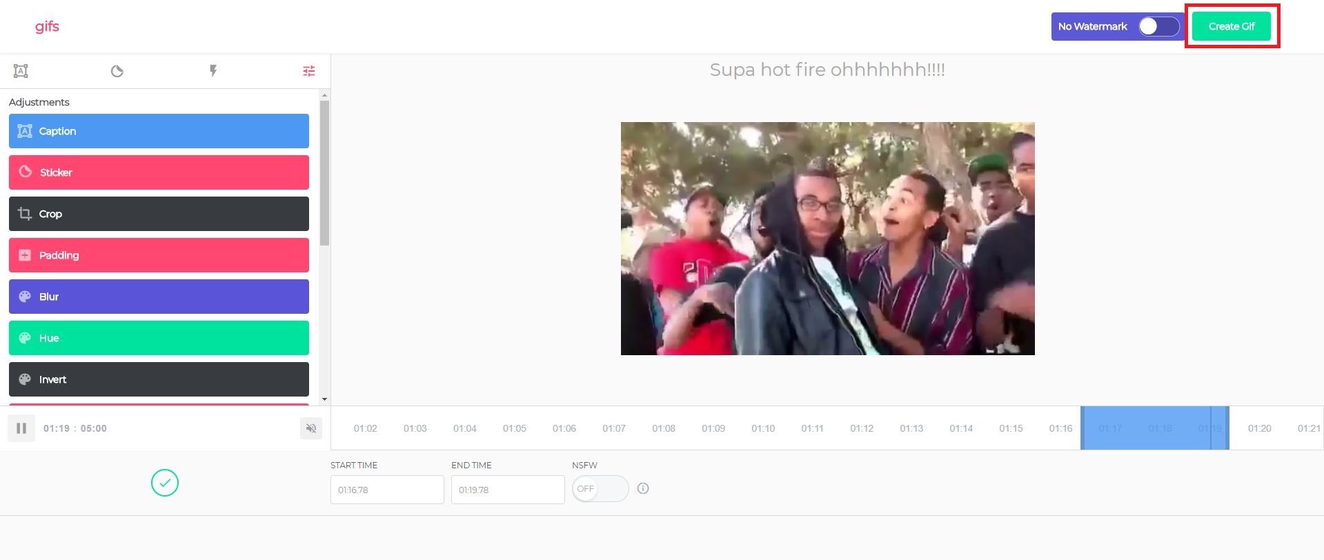 Step 5: una volta che pensi di aver completato tutte le opzioni di personalizzazione, devi semplicemente cliccare sul pulsante ‘Create GIF’ che si trova in alto a destra nella pagina