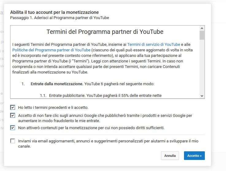 Accettate i termini del programma partner di YouTube.