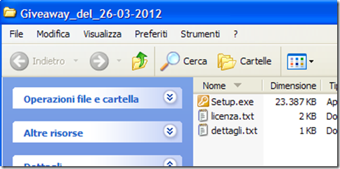 Nello specifico, il file di Setup.exe servirà ad installare il programma e dentro il file di testo licenza.txt è riportato il suo codice di attivazione.