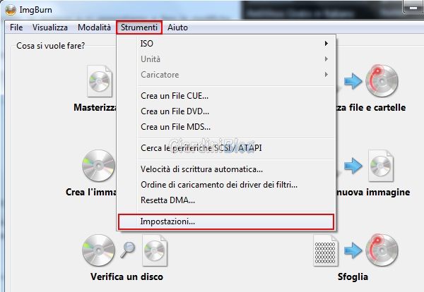 Ora che abbiamo tradotto in italiano il programma ImgBurn, è necessario avviarlo e modificare alcuni parametri per configurarlo al meglio.