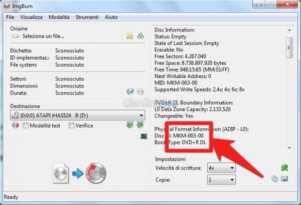 Per trovare il media code, è sufficiente inserire il disco e guardare la schermata di ImgBurn: