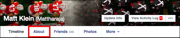 Andate su Facebook e cliccate sul vostro nome nella barra blu in alto. Quando si aprirà la pagina del vostro profilo, cliccate sulla voce "Informazioni" che si trova sotto alla vostra immagine di copertina.
