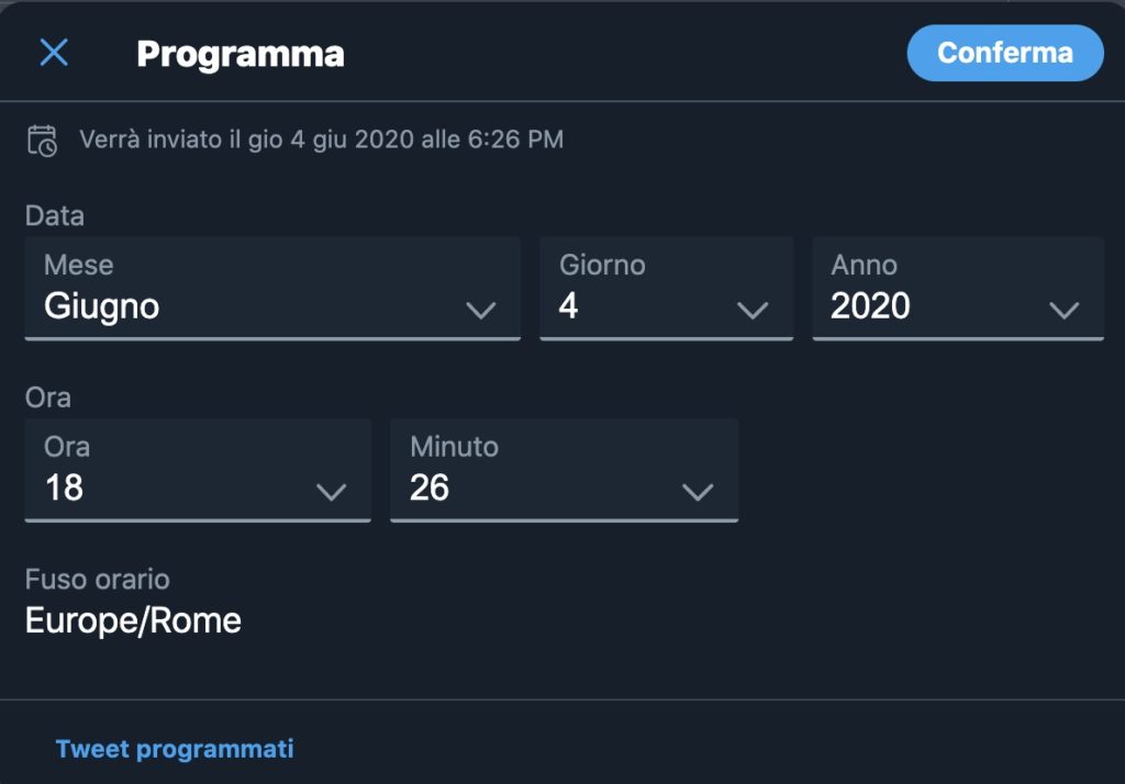 Questo significa che da oggi chiunque, con qualsiasi account Twitter, ha la possibilità di scrivere un post e di pubblicarlo in automatico nel giorno e nell'ora impostata.