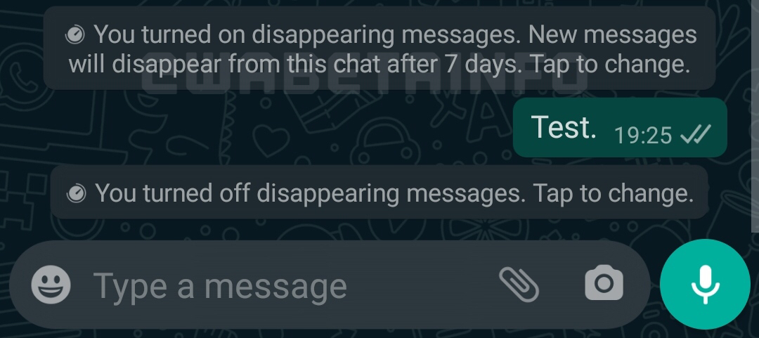 - se il messaggio inviato nella chat in cui sono abilitati i messaggi effimeri non viene letto entro 7 giorni, sparirà automaticamente