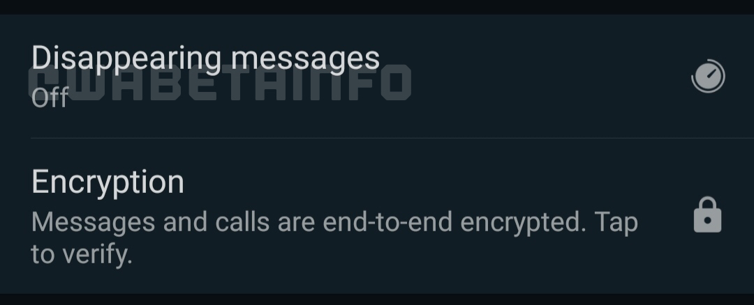 - per abilitare la funzione devi: andare nella chat > cliccare sui 3 puntini in alto a destra > cliccare su Mostra Contatto > scorrere la pagina che si apre fino a cercare la voce DISAPPEARING MESSAGES (o simile tradotta in italiano). Se la voce è presente, si trova SOPRA alla voce Crittografia; se non è presente, significa che la funzione non è ancora attiva sul tuo account. Nel mio caso, ad esempio, la funzione non è ancora stata abilitata