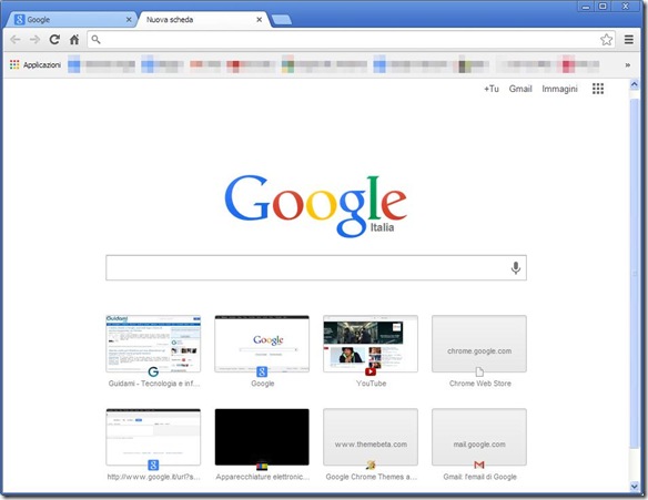 Come abbiamo già anticipato, il recente aggiornamento di Google Chrome ha portato sul browser alcune novità, prima fra tutte la nuova interfaccia per la pagina "Nuova Scheda", che è stata radicalmente cambiata. Sono spariti i siti preferiti, le schede chiuse di recente e le applicazioni installate per fare spazio alla barra di ricerca di Google, al nuovo logo del motore di ricerca e ai siti web più visitati. Se devo essere sincero, questa nuova pagina di Google Chrome non mi piace, mi sembra scomoda e macchinosa da utilizzare.