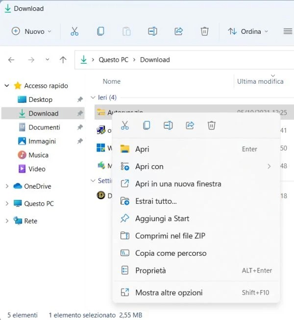Per aprire direttamente il vecchio menu contestuale in Windows 11, si può anche premere la combinazione di tasti MAIUSC+F10.