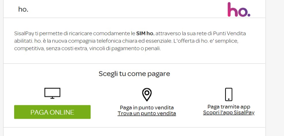 Come Ricaricare SIM Ho. Mobile: Ora anche sul sito SisalPay
