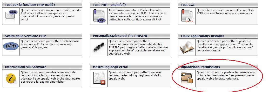 - Cliccare sul pulsante Riparazione Permission che è l'ultimo in fondo a destra.