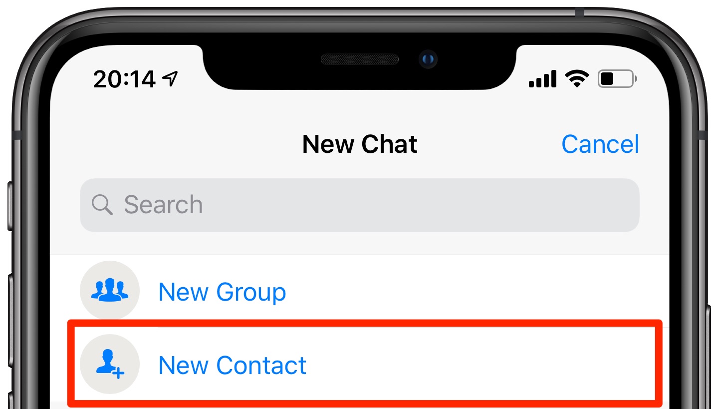 4) Ora cicca su Nuovo Contatto nel menù che compare