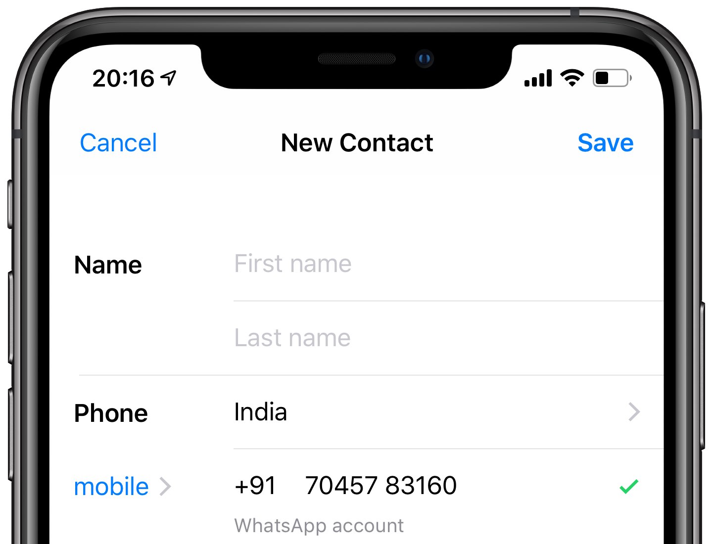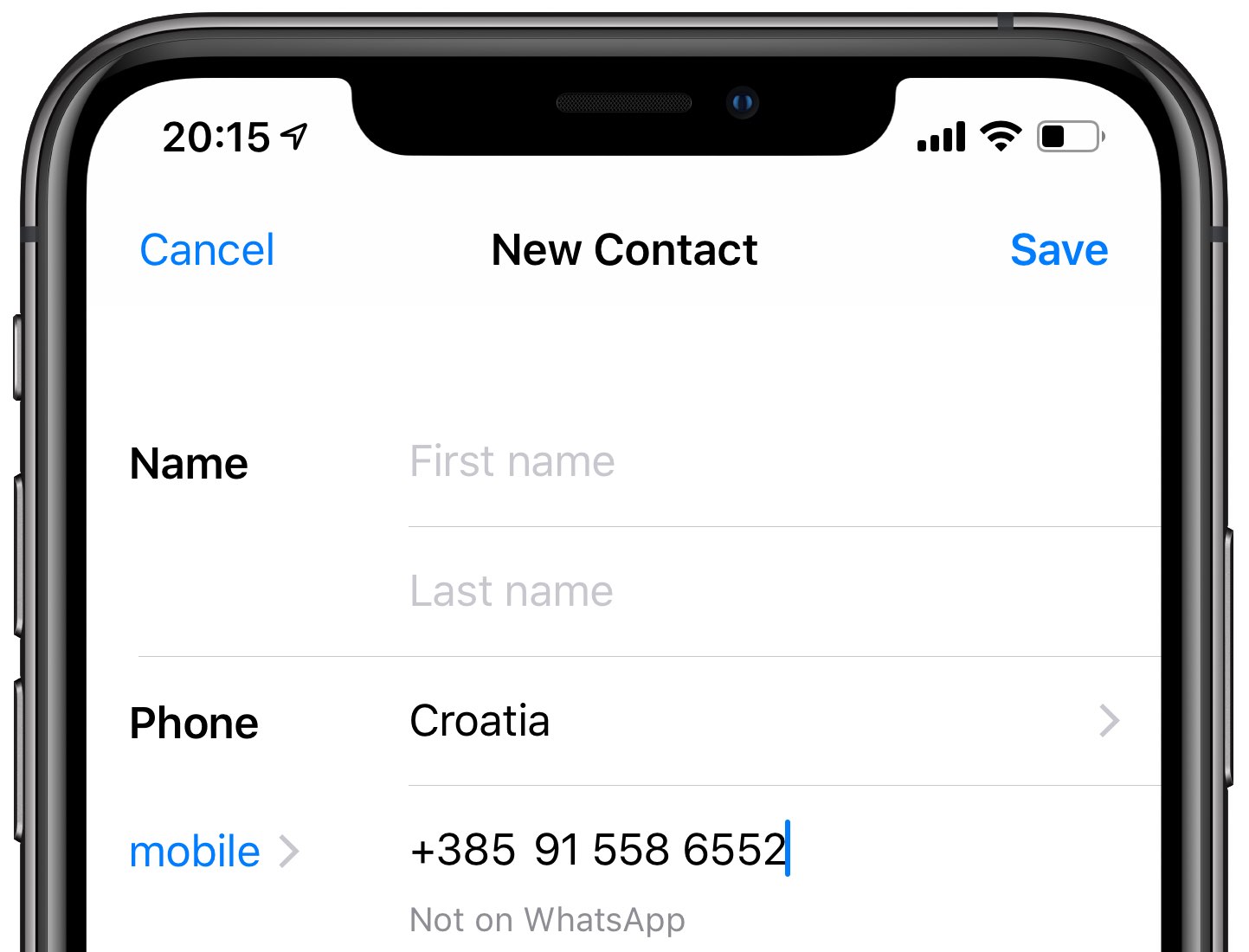 6) A questo punto, completato il controllo, spetta a te fare la scelta: puoi salvare il numero in rubrica (aggiungendo nome, cognome e altre informazioni) o annullare tutto se volevi semplicemente controllare se quella persona usava WhatsApp.