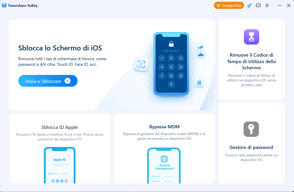 Utilizza Tenorshare 4uKey per Sbloccare il tuo iPhone
