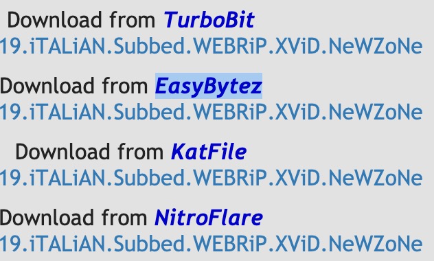 - una volta trovato il film o l'episodio della serie tv che ti interessa, procurati il download link che poi dovrai incollare in jDownloader. Purtroppo questo passaggio cambia molto da sito a sito, ma in generale dovresti trovare un link che rimanda a siti come Mixdrop, TurboBit, NitroFlare, KatFile, EasyBytez e simili. In generale, comunque, consiglio di andare sul sito MARAPCANA per procurarti i link: è sempre ben rifornito e aggiornato e spesso ha link che scaricano velocemente. Ecco un esempio di come potrebbero essere presenti i link di cui ti parlavo: