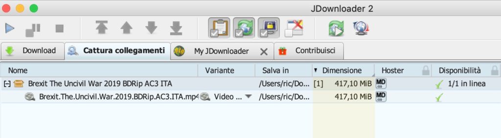 - a questo punto devi solo aspettare che jDownloader finisca il download. Ovviamente il tempo necessario cambia dal peso del film, dal sito da cui scarichi e dalla velocità della tua connessione internet. A download completato, troverai il film nella cartella DOWNLOAD del tuo computer e lo potrai guardare offline dove e quando vorrai, senza bisogno di internet.
