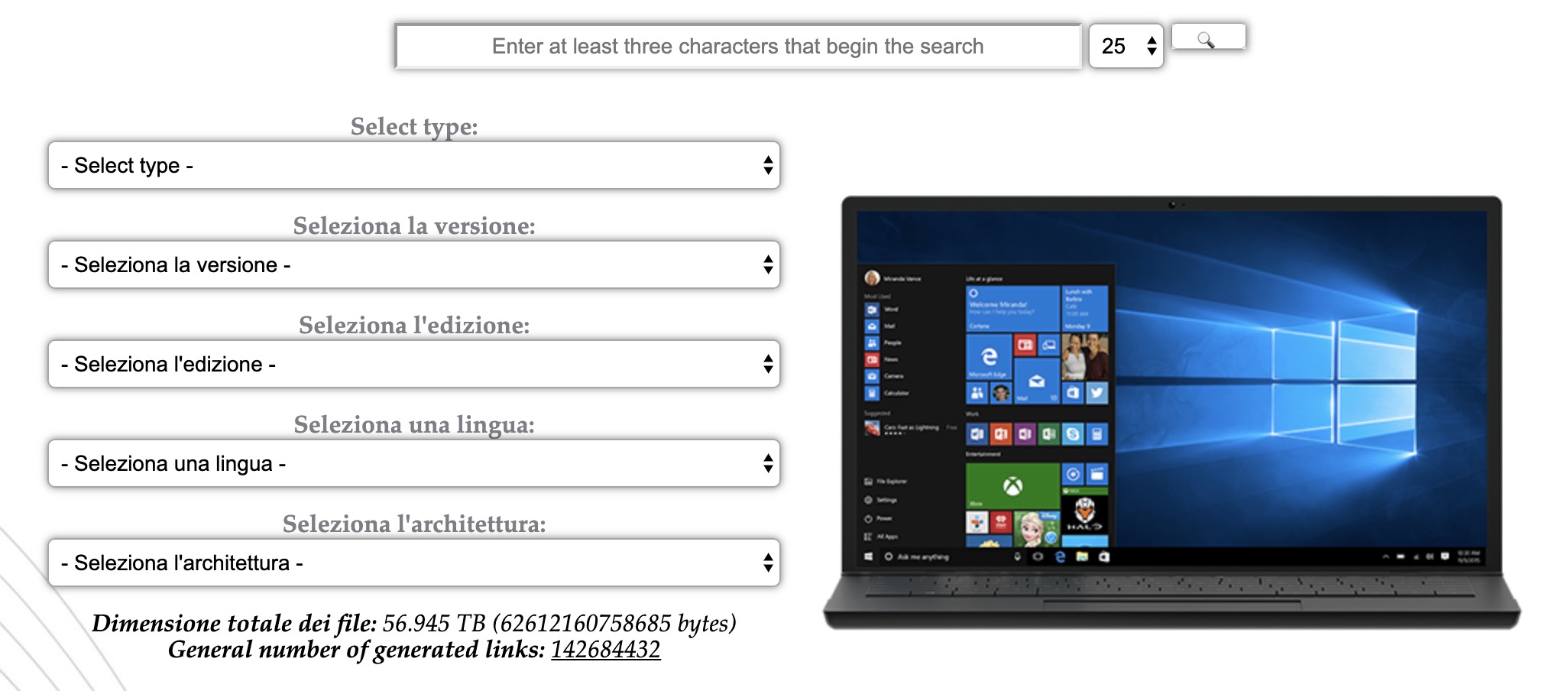 - scegli la versione d'interesse, l'edizione, la lingua e l'architettura (32 o 64 bit)