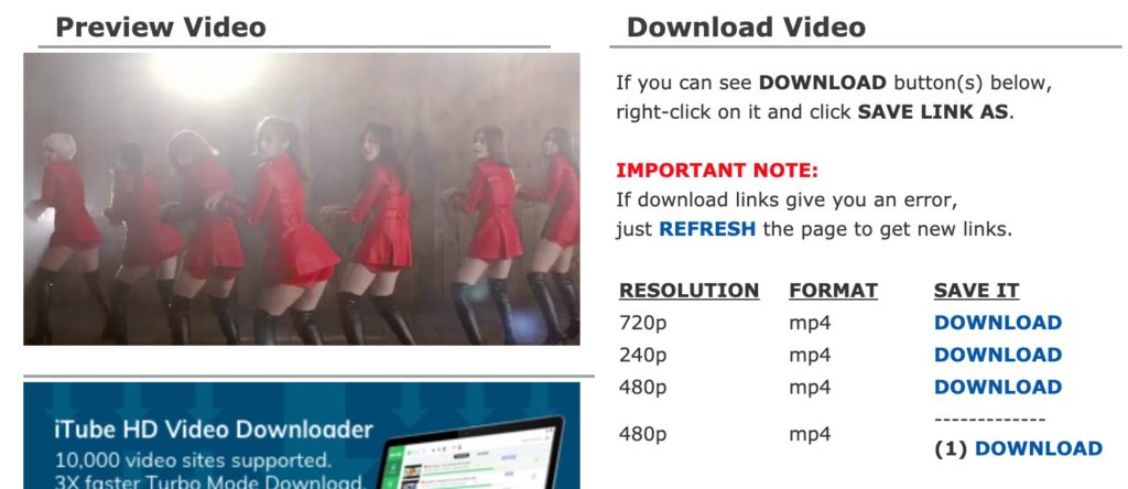 Giusto per conoscenza, ecco invece un'anteprima di come si presenta la schermata di download dell'altro sito che ti ho proposto. Come ti avevo anticipato, il funzionamento è identico al primo sito. Ti basterà un click per avviare il download e anche in questo caso potrai selezionare la qualità del video tra quelle proposte. Ovviamente la 720p è la migliore, la 480p è la media, la 240p è la più bassa.