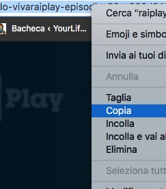- Fatto questo, copia il link del video che ti interessa scaricare. Lo trovi nella parte alta del tuo browser internet (ES: https://www.raiplay.it/video/2019/12/fiorello-vivaraiplay-episodio-23-c622d243-e18c-4e8d-aa20-78f1a8e44665.html). Per copiarlo, cliccaci sopra col pulsante destro del mouse, poi clicca su COPIA