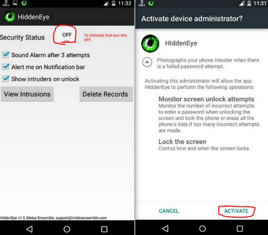 Ever wanted to know who tried snooping into your phone while you were away. Your friends or family member might have tried to unlock your phone. Hidden Eye is a simple app with no frills that will photograph the person when they try to unlock your phone. You can set it to play your ringtone when a user tries to unlock your phone without your knowledge.