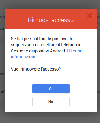 Infatti cliccando sul dispositivo che vorremo dissociare sarà sufficiente cliccare su Rimuovi accesso e poi su SI in modo da cancellare eventuali accessi ai nostri file memorizzati online. Sull'account Google sono memorizzati i dispositivi che hanno avuto accesso negli ultimi 28 giorni.